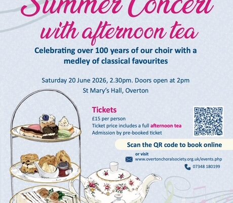 Music lovers are invited to enjoy an afternoon of classic choral favourites paired with traditional afternoon tea at a special Summer Concert taking place on 20 June at St Mary’s Hall, Overton.